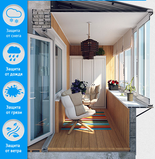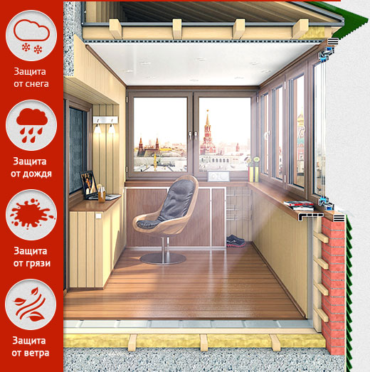 Теплое остекление проводится с использованием профилей ПВХ и позволяет получить самую настоящую теплую и уютную комнату. Изначально для такого типа остекления устанавливаются окна со стеклопакетами. Далее требуется утеплить простенки под рамой окон, которые граничат с улицей. На последнем этапе теплого остекления производится ремонт и чистовая отделка оставшихся плоскостей. В результате вы получите балкон, которому не будут страшны холода и морозы!